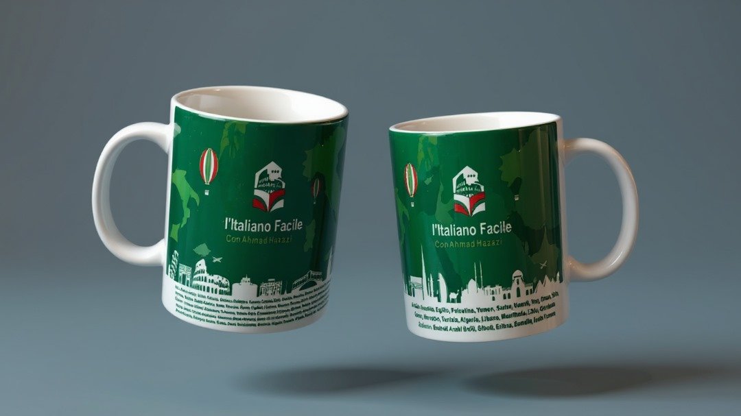 عبارة عن مجموعة من الأدوات المساعدة للمتعلمين الذين يرغبون حقًا بتحقيق أهدافهم والوصول إليها. لدينا هنا كأس مطبوع عليه خريطتي العالم العربي وشبه جزيرة جمهورية إيطاليا، ويحتوي على أسماء للدول العربية ولأسماء مدن إيطالية، بالإضافة إلى دولتي الفاتيكان وسان مارينو. ومصاحبة دفتر متوسط الحجم، مسطر، ذو لون أخضر بحيث يمكن المتعلمين من تدوين ملحوظاتهم. وأخيرًا، قلم أخضر للتدوين، وكل هذه المنتجات خاصة فقط بأكاديمية الإيطالية السهلة مع أحمد هزازي (L'Italiano Facile con Ahmad Hazazi).